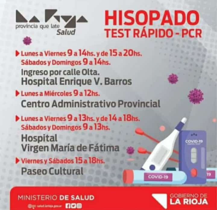 馃煢 INFORMACI脫N IMPORTANTE 馃煢 Federico conteras 29 julio, 2021 A CONTINUACI脫N TE PASAMOS INFO PARA QUE TENGAS EN CUENTA A LA HORA QUE NECESITES REALIZARTE UN TEST R脕PIDO O UN HISOPADO. TE MOSTRAMOS D脥AS, HORARIOS Y LUGARES OFICIALES DESDE EL GOBIERNO PROVINCIAL COMPARTIR & PUBLICAR