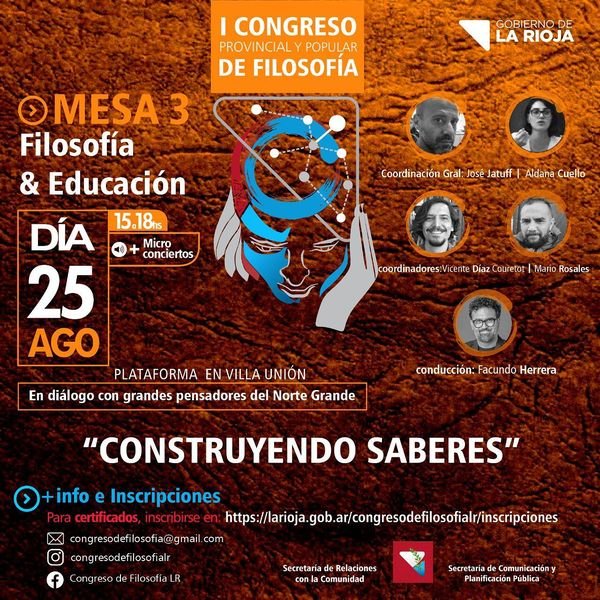 🟧 A CONTINUACIÓN TE PRESENTAMOS LA TERCER MESA EXPOSITORA DEL PRIMER CONGRESO PROVINCIAL Y POPULAR DE FILOSOFÍA 🟧
