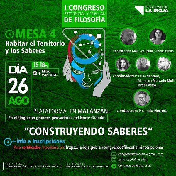 🟩 A CONTINUACIÓN TE PRESENTAMOS LA CUARTA MESA EXPOSITORA DEL PRIMER CONGRESO PROVINCIAL Y POPULAR DE FILOSOFÍA 🟩
