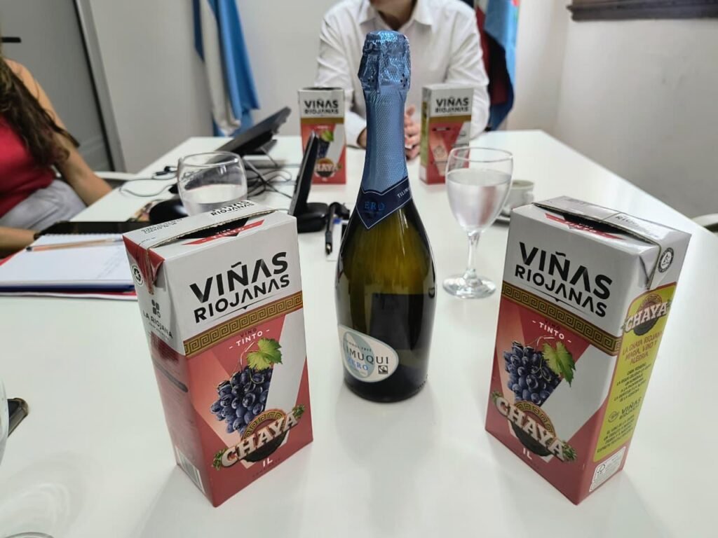 El gerente de La Riojana Cooperativa, Matías Caimi, le presentó al ministro de Turismo y Culturas, Gustavo Luna, el flamante packaging de su tradicional vino “Viñas Riojanas”, que en sus versiones blanco y tinto en envase tetrabrik contiene el logo oficial del Festival de la Chaya, además de un texto que resalta el valor cultural de la Chaya como evento que identifica a La Rioja ante el país y el mundo.