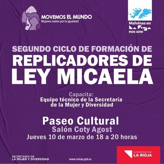 Hoy jueves 10/03 de 18 a 21hs, el Gobierno provincial continua con la capacitación destinada a replicadores de Ley Micaela.