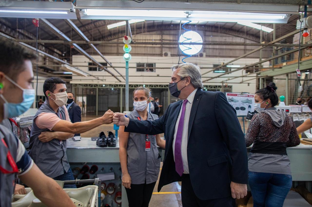 El presidente Alberto Fernández aseguró que el Gobierno nacional va a proteger «al trabajo, al que invierte, al que produce, y al que permite el desarrollo que una sociedad necesita», al visitar este mediodía en Eldorado, Misiones, la planta de producción de calzado e indumentaria deportiva de la firma Dass.