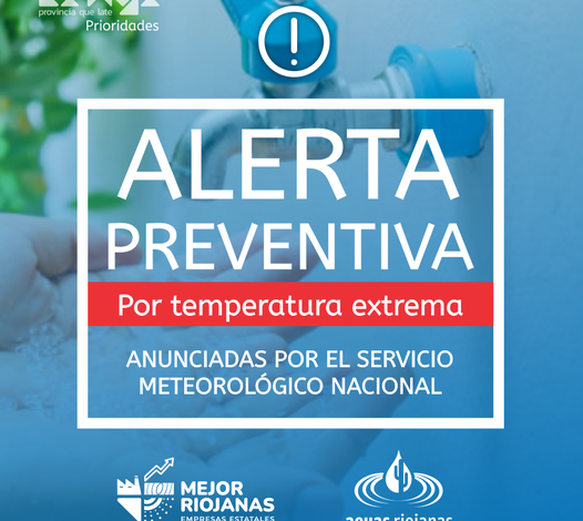 Para los próximos días renovamos alerta, esta vez por temperaturas extremas pronosticadas por el Servicio Meteorológico Nacional. La finalidad de esta alerta es cuidar el agua potable.