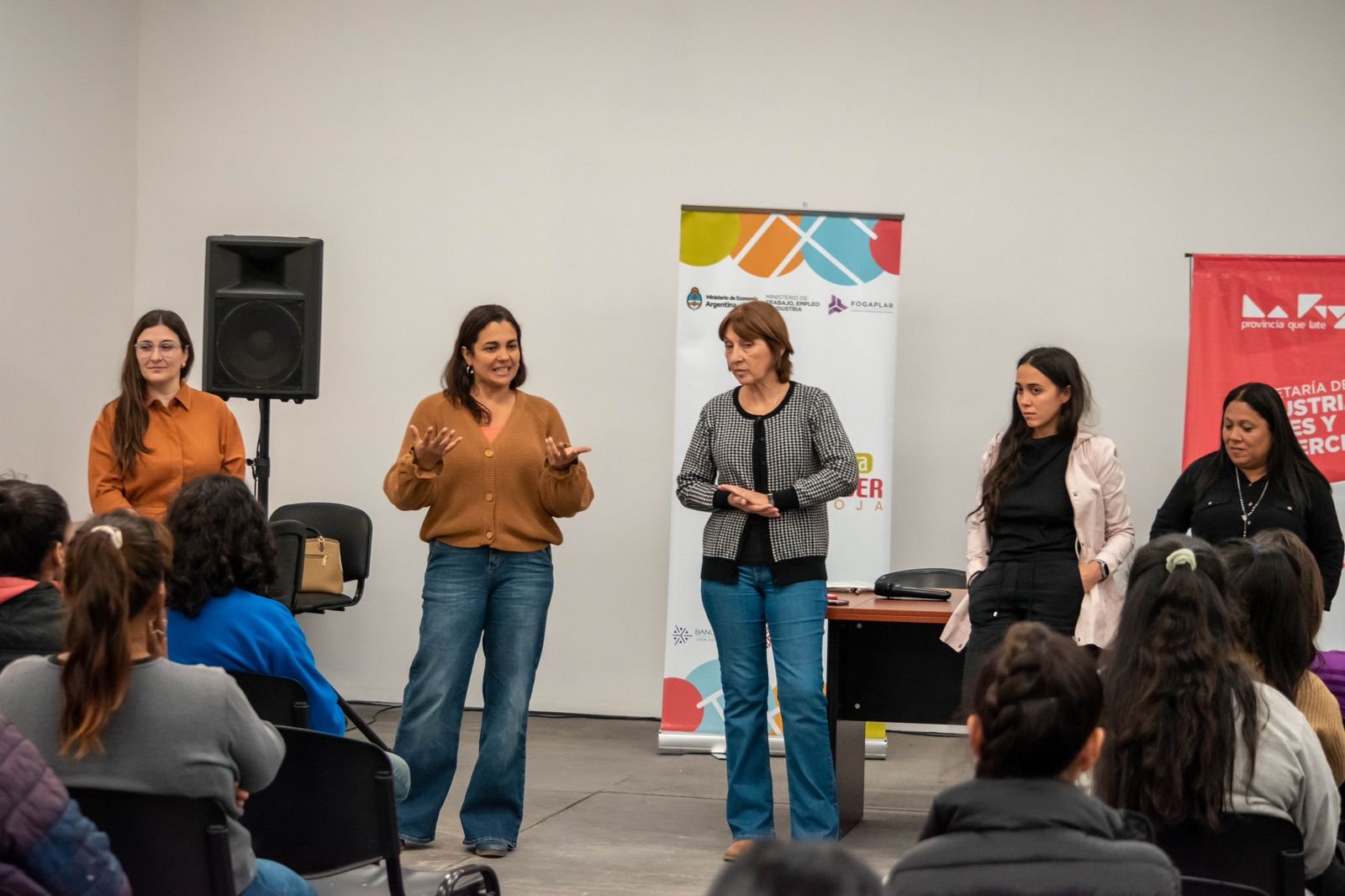 En una reunión informativa junto a egresadas de ediciones anteriores del Programa Constructoras, la secretaria de Industria Julieta Calderón, la subsecretaria de Gestión de Proyectos, Viviana Simone y la secretaria de Enlace para el Ordenamiento Territorial y el Desarrollo Sostenible, Paula Garello, dialogaron acerca de las oportunidades laborales que se les presentan a estas mujeres formadas y capacitadas en oficios y técnicas de construcción.