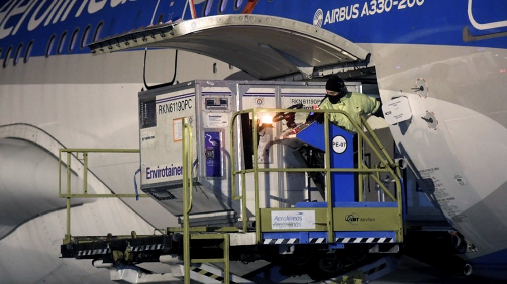 El primero de los envíos, con 1.536.000 dosis, será trasladado desde Frankfurt, Alemania, en el vuelo LH8264 de la empresa Lufthansa y se espera que aterrice en el Aeropuerto Internacional de Ezeiza este sábado a las 18.45.