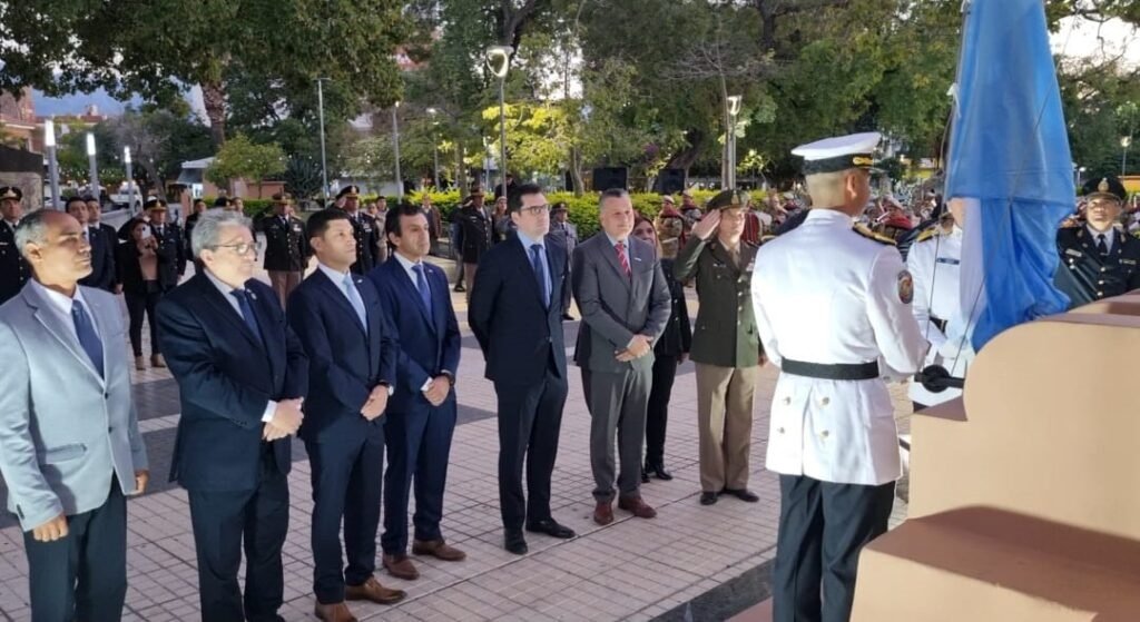 En primera instancia, en la Plaza 25 de Mayo se hizo la presentación de la Agrupación 25 de Mayo y el saludo inicial al jefe de Gabinete, Juan Luna, quien encabezó esta actividad.