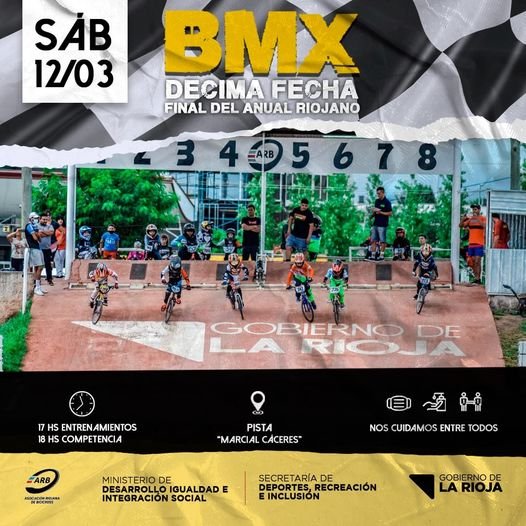 BMX: DECIMA FECHA FINAL DEL ANUAL RIOJANO Federico conteras 12 marzo, 2022 Éste fin de semana, en la pista Marcial Cáceres se vivirá la final del Torneo Anual Capitalino. 17:00 hs entrenamientos 18:00 hs competencias. COMPARTIR & PUBLICAR