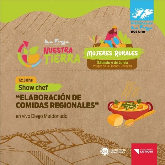CHILECITO SE PREPARA PARA VIVIR UNA GRAN JORNADA CON EL EVENTO «MUJERES RURALES» Federico conteras 1 junio, 2022 Este sábado 4 de junio en el Parque de la Ciudad habrá diversas actividades para disfrutar en familia de forma gratuita. A las 12:30 hs el chef Diego Maldonado cocinará en vivo para los presentes. No se lo pierdan. ¡Los esperamos! COMPARTIR & PUBLICAR