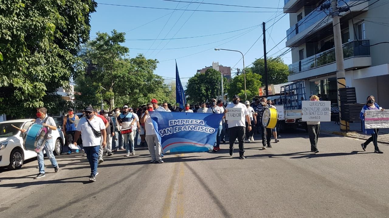 El grupo de choferes de la empresa San Francisco, que hace más de dos meses acampa en la plaza 25 de Mayo, salió este lunes a manifestarse por las calles de la ciudad de La Rioja.