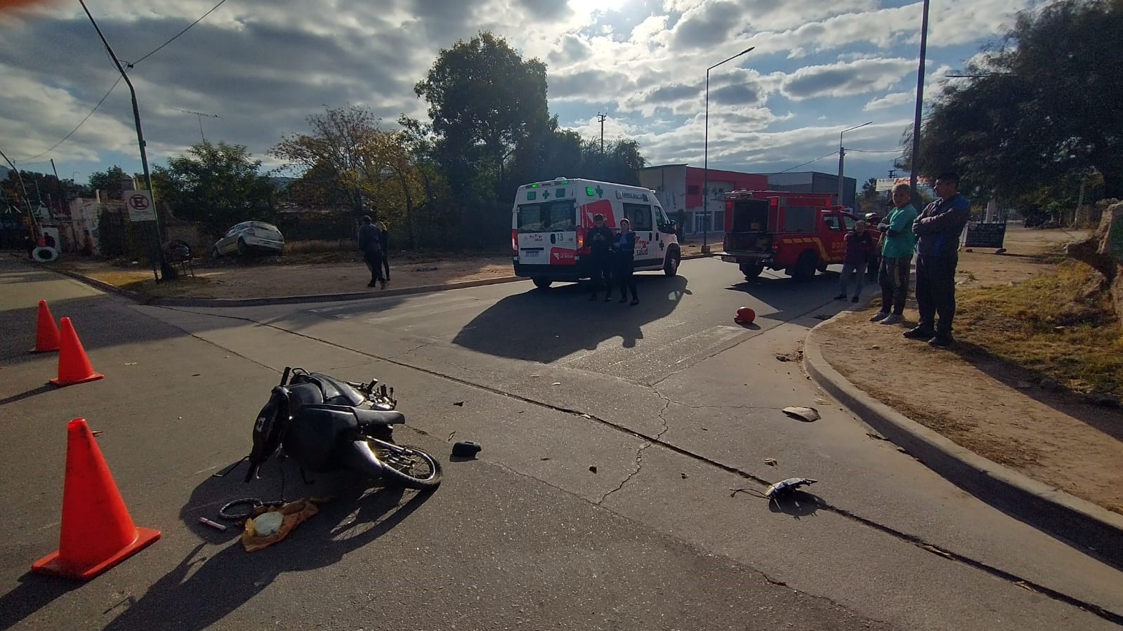Por avenida Primero de Marzo y San nicolás de Bari se registra un siniestro vial de una motocicleta Brama Nevada 110cc color negra con dominio 476EMH conducida por Contreras David 36 años, por razones que se desconoce se produce una colisión con un automóvil Chevrolet Agile color champagne con dominio LIX 282 conducida por quintero Érica 38 años producto de la misma Contreras sufre escoriaciones leves en miembro superior Izquierdo mientras que Quintero resulta ilesa. Se trabajo realizando contención e inmovilización hasta el arribo del DEM 107 quien determina el traslado el señor Contreras.