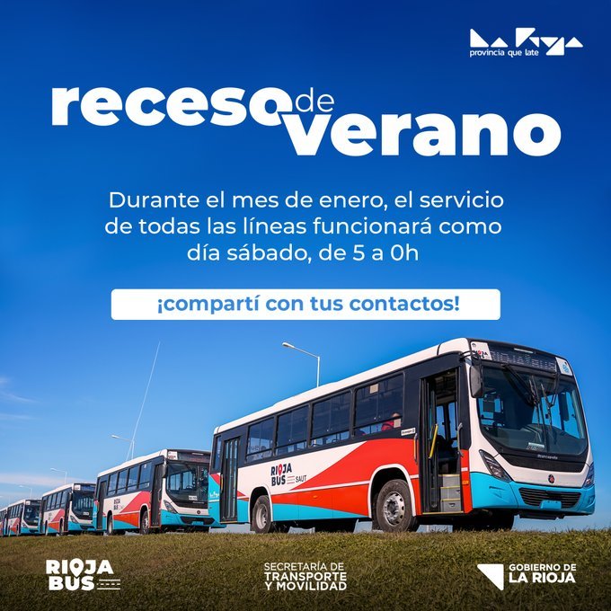 COMO FUNCIONARÁ EL SERVICIO DE RIOJA BUS DURANTE EL RECESO DE VERANO