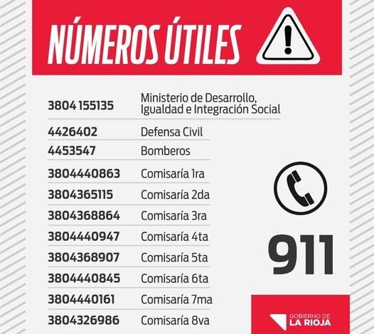 COMPARTIMOS NÚMEROS ÚTILES ANTE LAS INCLEMENCIAS CLIMÁTICAS