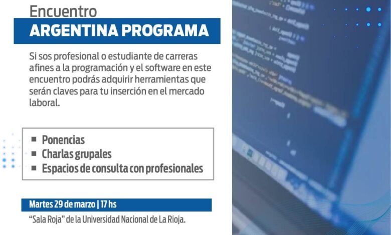 El Ministerio de Trabajo, Empleo e Industria, mediante la Secretaria de Ciencia y Tecnología, llevará a cabo el encuentro “Argentina Programa”. El mismo se realizará el martes 29 de marzo del 2022 a las 17 horas en la Sala Roja de la Universidad Nacional de La Rioja.