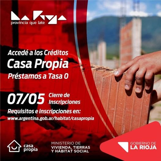 Requisitos e inscripciones en: www.argentina.gob.ar/habitat/casapropia