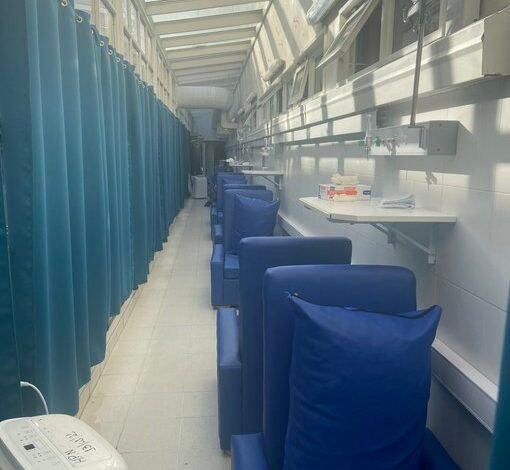 El espacio que antes era un sector de paso para los que transitan por el Castro Rendón se convirtió en una sala de guardia improvisada, con 8 cómodas butacas con oxígeno. «No podemos decir que ampliamos la guardia», dijo Goldman, a La Mañana de Neuquén, sobre la instalación de este box, un último recurso para mejorar la calidad de atención en un contexto de saturación del sistema público de salud.