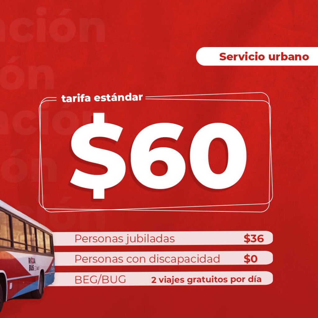 Desde este lunes el precio del boleto estándar en la Capital pasará a costar 60 pesos. Para jubilados y pensionados tendrá un valor de 36 pesos.
