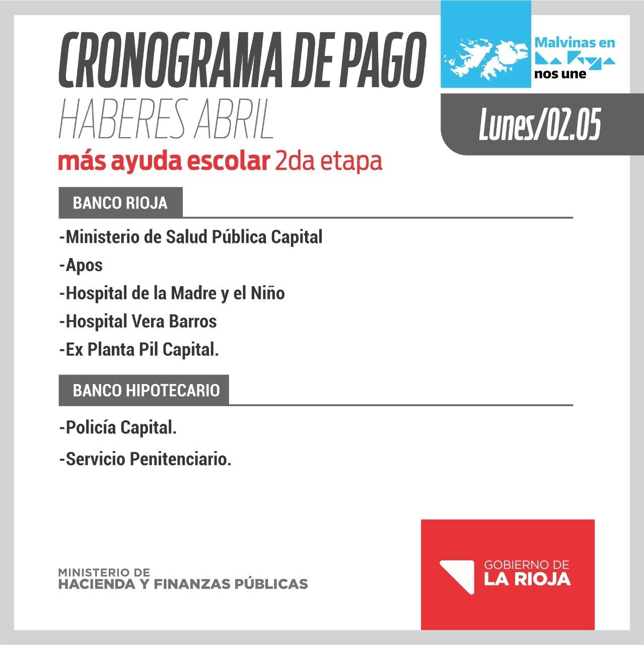 El cronograma iniciará este viernes con el pago de los haberes a las y los agentes de APOS, Salud, Policía de la Provincia, Servicio Penitenciario Provincial, Hospital Vera Barros y Hospital de la Madre y el Niño.