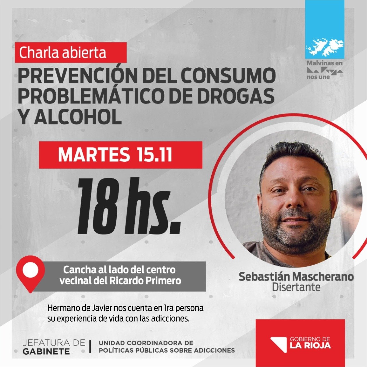 El disertante será Sebastián Mascherano -hermano de Javier, el exjugador de la Selección Argentina- quien en estas charlas contará en primera persona su experiencia de vida con las adicciones.