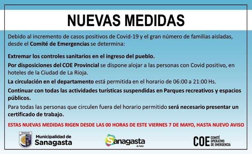 - Por disposiciones del COE Provincial se dispone alojar a las personas con Covid positivo, en hoteles de la Ciudad de La Rioja.