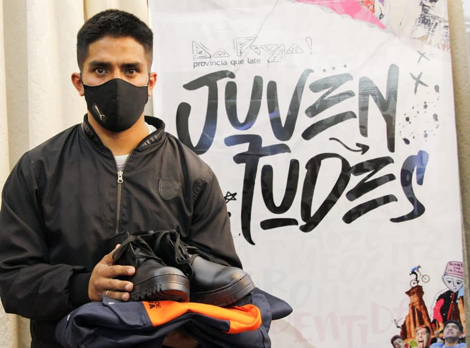 Seguidamente se realizó la entrega de indumentaria a los trabajadores que integran las cuadrillas de la Secretaría de Juventudes que durante este año y medio de pandemia desempeñaron sus tareas con compromiso y responsabilidad.