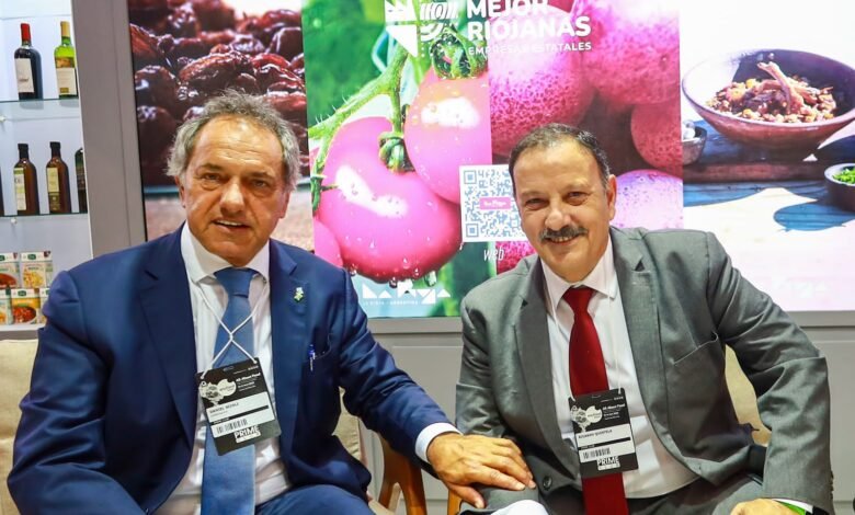 EL GOBERNADOR RICARDO QUINTELA Y EL EMBAJADOR DANIEL SCIOLI PRESENTES EN EL STAND DE LA RIOJA EN ANUFOOD