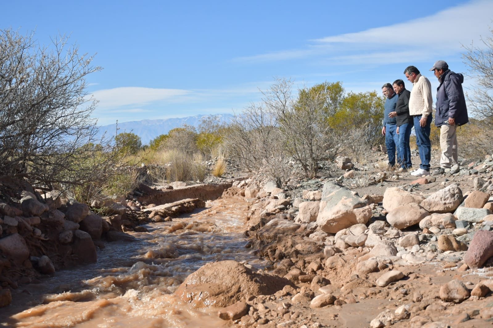 Asimismo, las autoridades visitaron los trabajos que se están desarrollando en la toma principal de riego en la localidad de El Bonete, distante a unos sesenta kilómetros de la cabecera departamental.