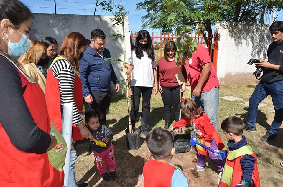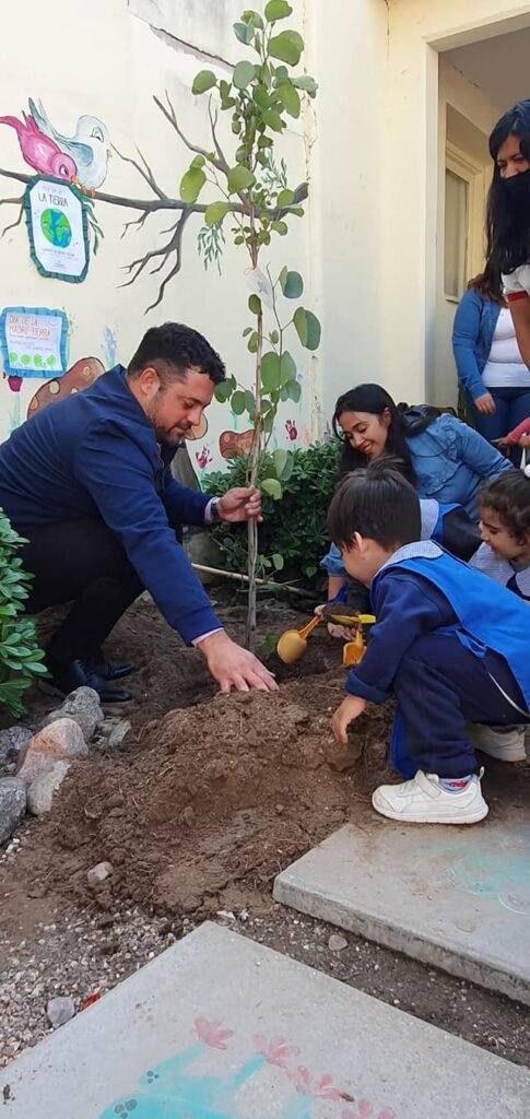 Allí junto al personal a cargo de la institución plantaron árboles, entregaron semillas para las familias, obsequiaron compost realizado en el Instituto de Servicios Ambientales, y finalizaron la jornada compartiendo con cada niño y cada niña un lindo cuento llamado «Cuidemos la Tierra».