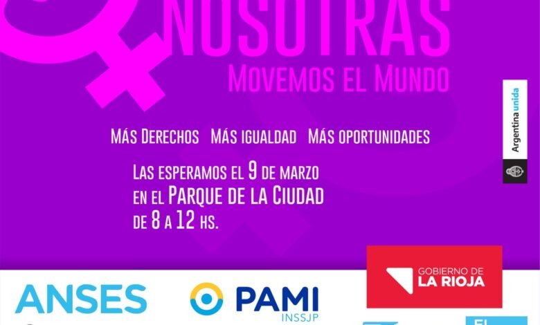 La convocatoria que tiene como lema “Nosotras movemos el mundo, más derechos, más igualdad, más oportunidades”, es realizada por la ANSeS, PAMI, Migraciones, Ministerio de las Mujeres y Diversidad, Radio Nacional AM 620, FM 102.5, Centro de Acceso a la Justicia, Centro de Referencia La Rioja Ministerio de Desarrollo Social Presidencia de la Nación, El Estado en tu barrio y la Comisión Nacional de Regulación del Transporte.