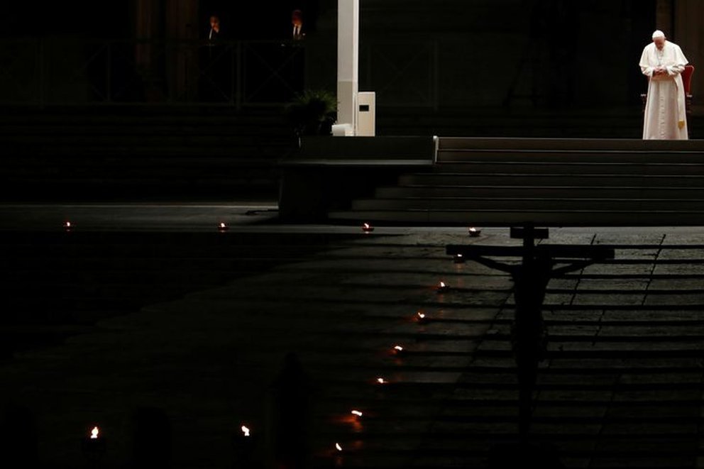 Sin fieles y sin los tradicionales rituales que aglomeraban a miles de personas, el Papa presidió los actos litúrgicos del Triduo -la celebración de la pasión muerte y resurrección de Jesucristo- en una de las Pascuas más impactantes de la historia en una solitaria basílica de San Pedro en el Vaticano donde estaba presente el Crucifijo milagroso de la Iglesia de San Marcello al Corso, que fue llevado en procesión por los barrios de Roma durante la epidemia de peste del siglo XVI.