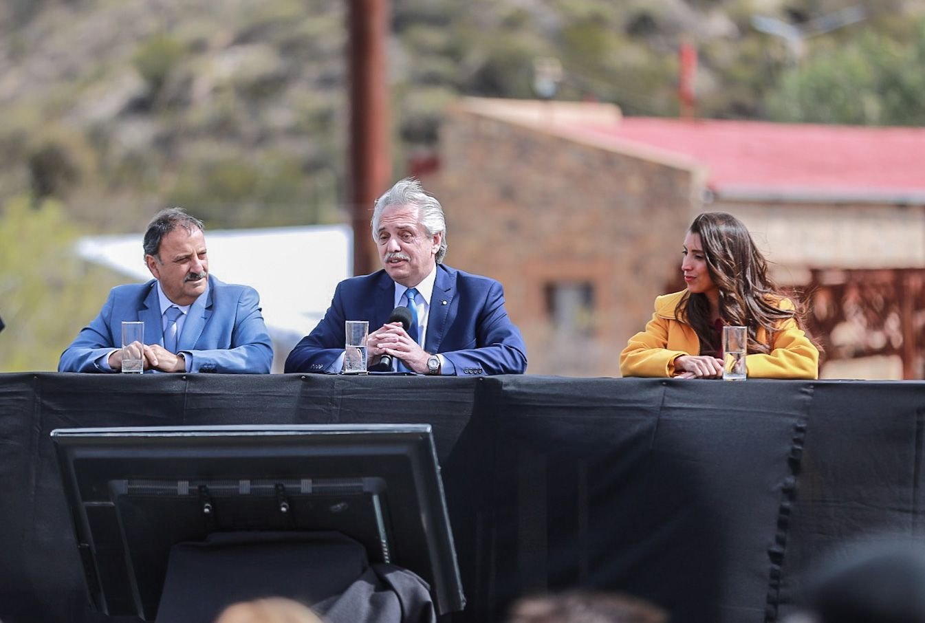 El gobernador Quintela junto al Presidente de los argentinos estuvo acompañado por los ministros de Desarrollo Territorial y Hábitat, Jorge Ferraresi; Cultura, Tristán Bauer; y Educación, Jaime Perczyk; la vicegobernadora, Florencia López; el intendente local, Rodrigo Brizuela y Doria, intendentas e intendentes de la Provincia; diputadas y diputados nacionales por La Rioja, legisladores provinciales y demás funcionarios del Gabinete provincial.