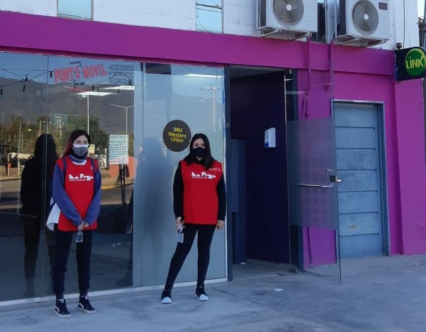 Con la reapertura de los comercios, luego de establecerse una ventana de 9 días con medidas más estrictas para procurar cortar más rápido la cadena de contagios, se pudo observar la presencia de los Chalecos rojos pertenecientes al COE en el ingreso de estos locales, a fin de controlar que se cumplan con los protocolos correspondientes, como ser uso del barbijo, alcohol en las manos, distanciamiento correspondiente, y que se cumple con la capacidad estipulada para cada sector.