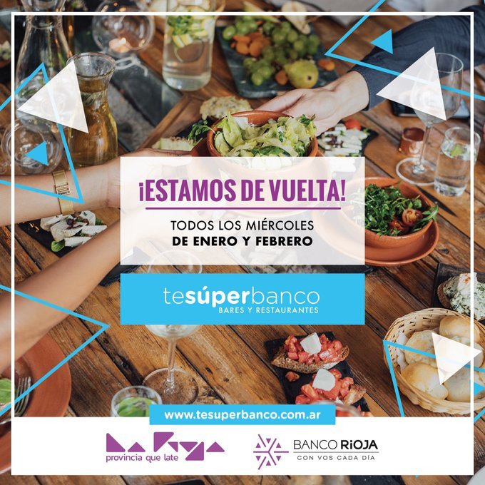 En enero y febrero EL Banco Rioja te súper banca con te súper banco bares y restaurantes, brindándote el 30% de descuento con tus tarjetas de débito y crédito Mastercard BR todos los miércoles de enero y febrero en comercios gastronómicos con un tope de reintegro mensual de $1000 (con crédito 3 y 6 cuotas sin interés y sin tope de reintegro).