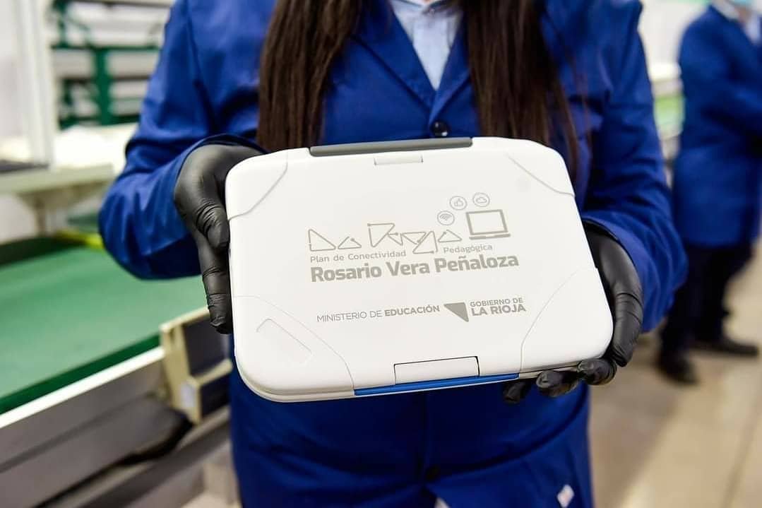 El gobernador Ricardo Quintela y los ministros Nicolás Trotta y Ariel Martínez visitaron la Fábtica de Internet para Todos, donde se está ensalmando y cargando contenidos educativos a las 20 mil notebooks que se entregarán a los estudiantes riojanos en este período escolar 2021.