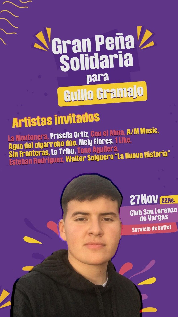 Él se encuentra acompañado de su pilar fundamental, que es su mamá, ella debe solventar los gastos de este tratamiento oncológico ( medicación, estudios, estadía) es costoso y no tiene los recursos necesarios para cubrir estos gastos, por lo que la familia se decidió realizar está peña para recaudar dinero y enviar a Guillo.