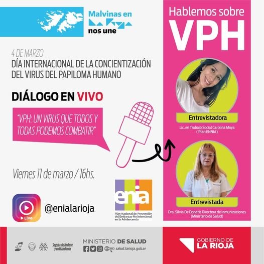 HABLEMOS SOBRE EL VIRUS DEL PAPILOMA HUMANO VPH Federico conteras 11 marzo, 2022 El Ministerio de Salud de la Provincia invita a toda la comunidad a participar de este diálogo en vivo. ¡HOY! Viernes 11 de marzo 16 hs. ¡Te esperamos! COMPARTIR & PUBLICAR