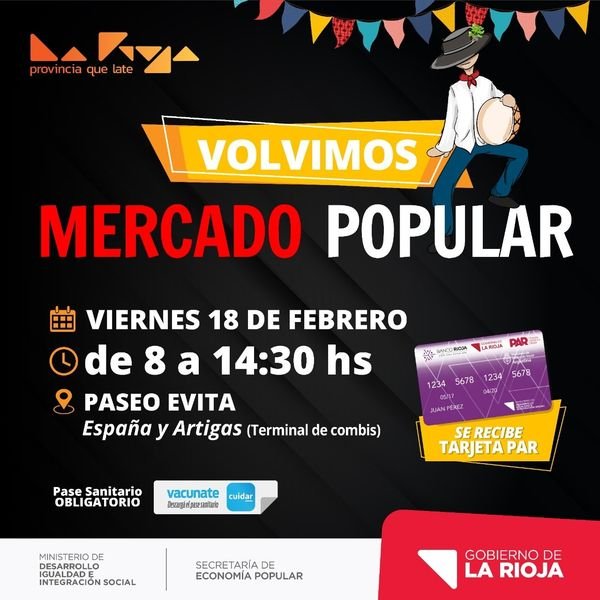Te esperamos por el Paseo Evita desde las 8.00 y hasta las 14.30hs, con todas las ofertas que trae esta nueva edición del mercado de productores y productoras riojanas, con productos de calidad a precios populares.