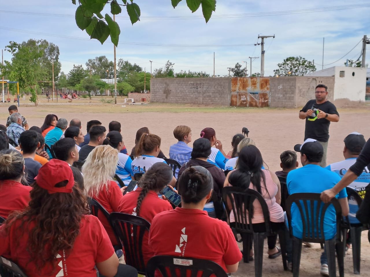 La charla tuvo lugar en la cancha ubicada al lado del centro vecinal del barrio y tuvo una importante participación de los vecinos.
