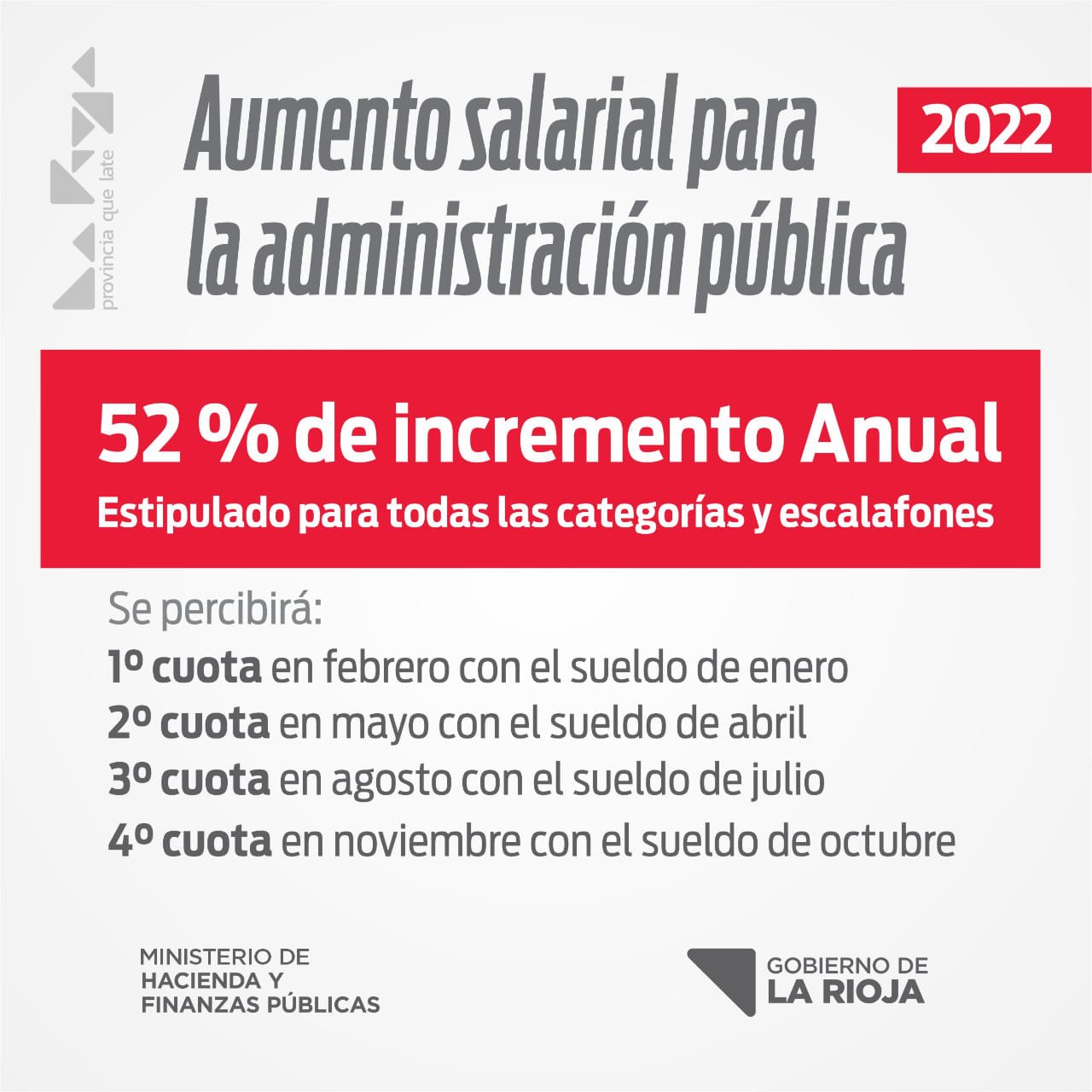 El mismo dispone de un 52% de incremento anual, estipulado para todas las categorías y escalafones y se percibirá en 4 partes.