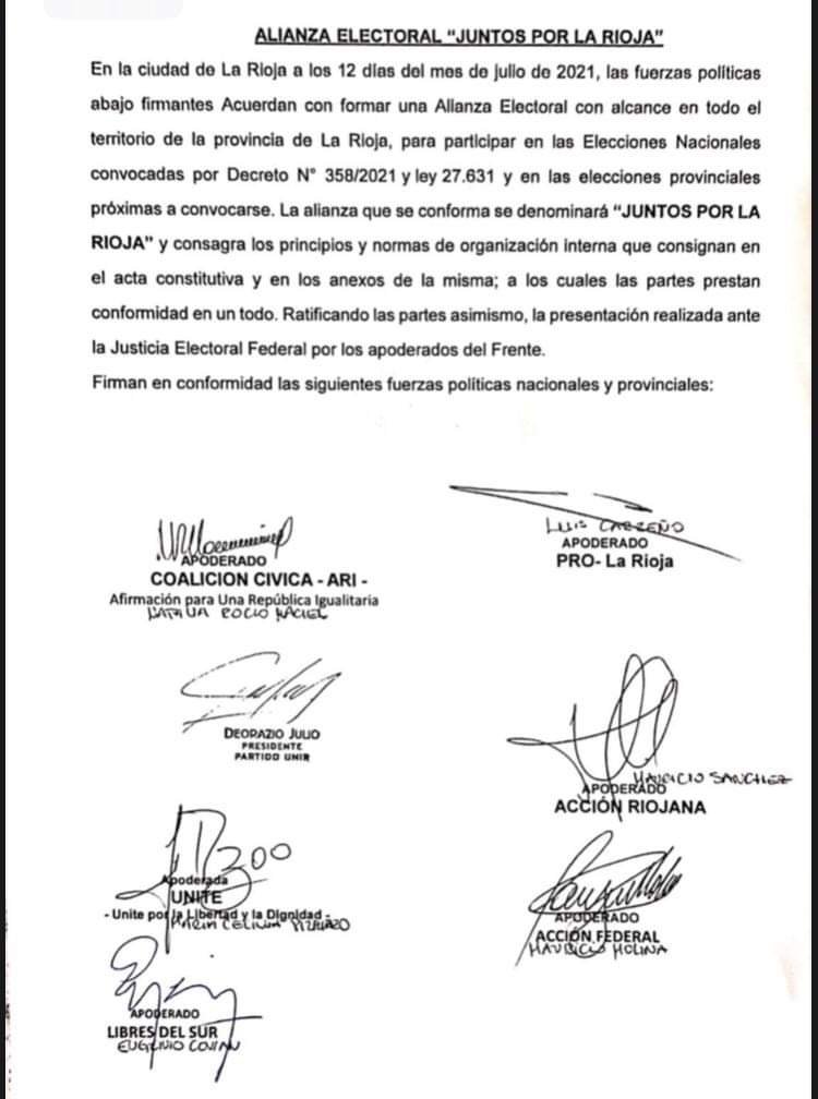 JUNTOS POR LA RIOJA DESPLAZÓ A LA UCR DE LA ALIANZA ELECTORAL