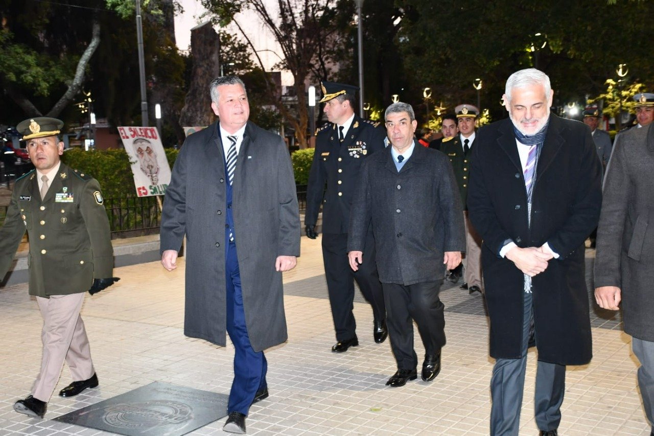 En representación de la función Judicial estuvo presente el presidente del Tribunal Superior de Justicia, en nombre de la función Legislativa lo hizo el diputado Pedro Goyochea, mientras que las fuerzas de seguridad provinciales y nacionales con asiento en La Rioja participaron a través de sus máximas autoridades. En Plaza 25 de Mayo, el ministro Gustavo Luna encabezó la revista de tropas y la presentación de las banderas de ceremonia de distintos colegios secundarios de la ciudad, para luego ofrecer una ofrenda floral en la tumba de Pedro Ignacio de Castro Barros, el destacado representante riojano ante el Congreso que declaró la independencia de la patria en 1816.