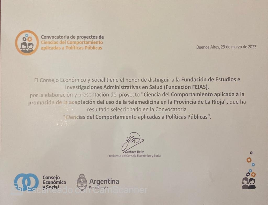 El Ministerio de Salud de La Rioja recibió un reconocimiento de la Secretaría de Asuntos Estratégicos de la Nación por el proyecto de Aplicación de Ciencias del Comportamiento a la Promoción de la Telesalud.