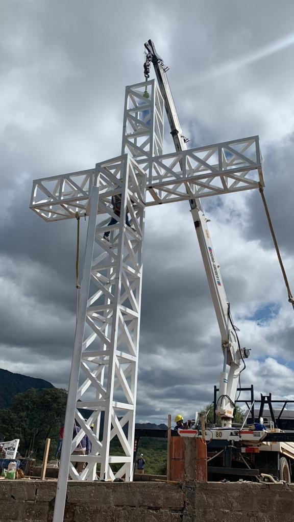 Duilio Castro, presidente de Ledlar, remarcó que la construcción de la imponente cruz fue realizada en el área metalúrgica y mide 12 metros de alto por 7 de ancho, pesando 3 toneladas. El montaje de la misma, estuvo a cargo de la Secretaría de Obras Públicas del Municipio de Chamical, en conjunto con la empresa estatal que preside, como así también con la empresa Monte Electro.