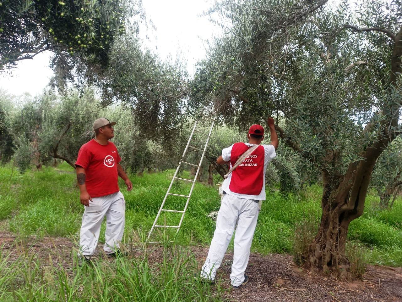 Integrantes de los Chalecos Rojos se suman a la cosecha de aceitunas. Así surgió tras una reunión que el gobernador Ricardo Quintela mantuvo con representantes de las empresas del sector olivícola.