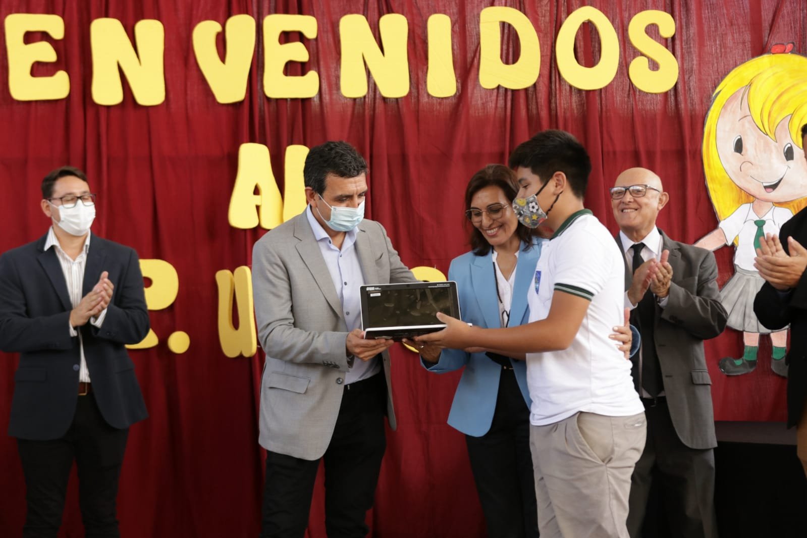 El Ministro de Educacion de la Provincia, Ariel Martinez en el dia de hoy hizo entrega de 478 computadoras a estudiantes del colegio San Martín del programa #ConectarIgualdad, que significa más escuelas conectadas, pisos tecnológicos y un nexo entre el establecimiento educativo y la familia.