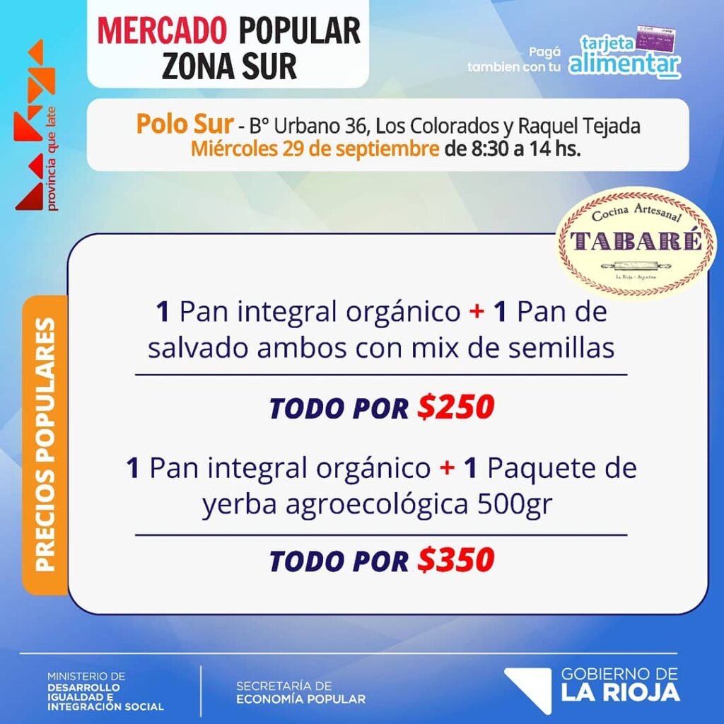 Mañana miércoles de 8:30 a a 14 hs podes disfrutar de los mejores productos de calidad a precios populares en la zona sur de la capital, en el Barrio Urbano 36, Los Colorados y Raquel Tejada.