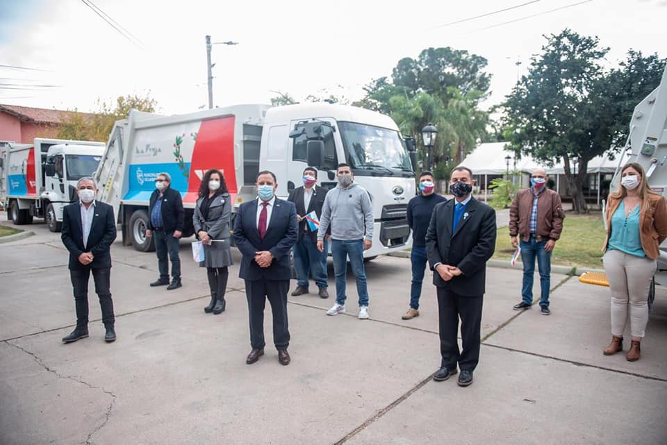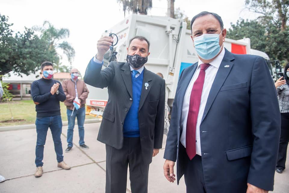 Asimismo expresó: «Hoy quisimos estar presentes a través de la entrega de tres camiones recolectores de residuos, cero kilómetro, como un gesto hacia los Municipios, conocedores de que no pasan por un buen momento y de que tienen serías dificultades para dar cumplimiento a los servicios esenciales así qué mejor que entregarles en este aniversario una herramienta de trabajo que sea puesta al servicio de la comunidad» y agregó que además «esto les permitirá ahorrar el dinero que hoy se está gastando en el alquiler de camiones». Adelantó que entre julio y agosto podrían llegar nuevas unidades para la recolección de residuos.