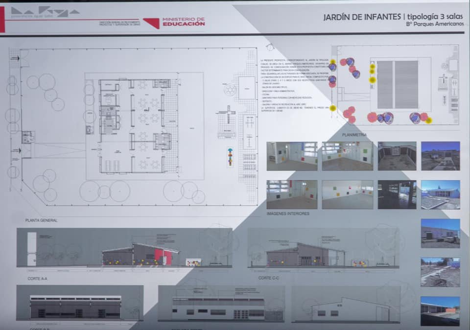 Con respecto a la construcción de los nuevos jardines de infantes, éstos consistirán en una nueva localización del prototipo ya ubicado en otros lugares. En este caso, se edificará este nuevo establecimiento, en el B° Parques Americanos de la ciudad de La Rioja Capital, con una superficie de 390 m2, con 3 salas.