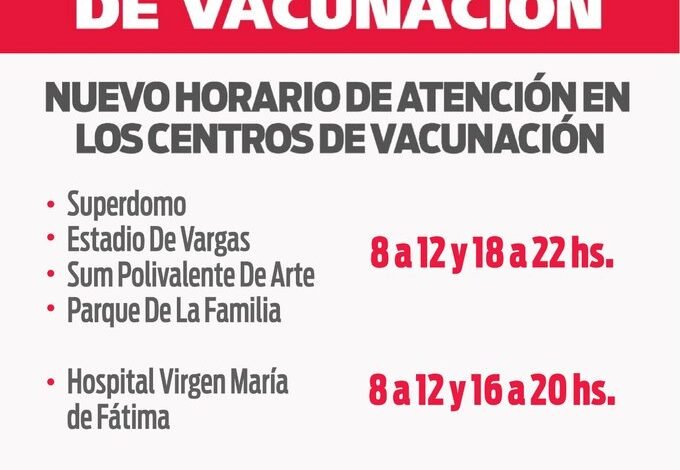 NUEVOS HORARIOS DE ATENCIÓN EN LOS CENTROS DE VACUNACION