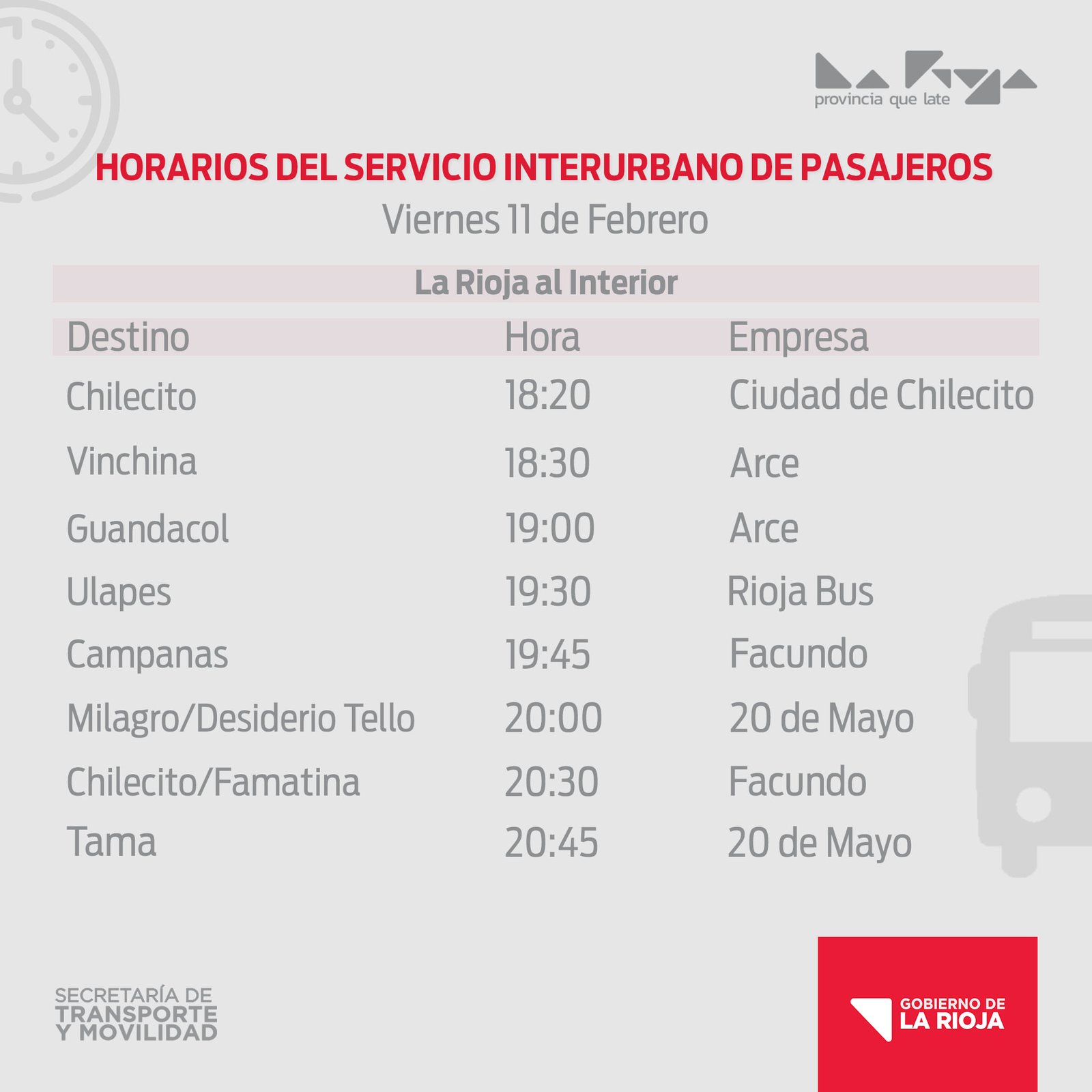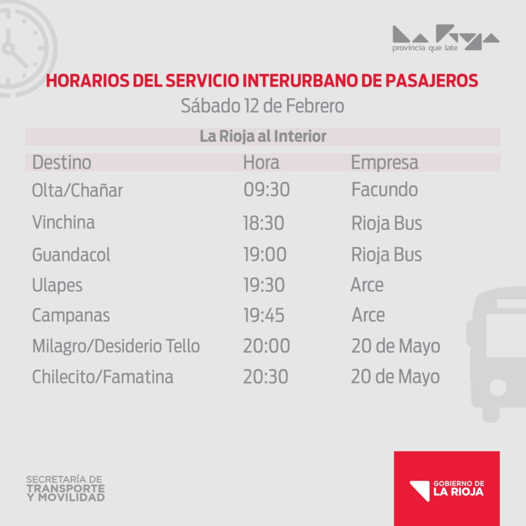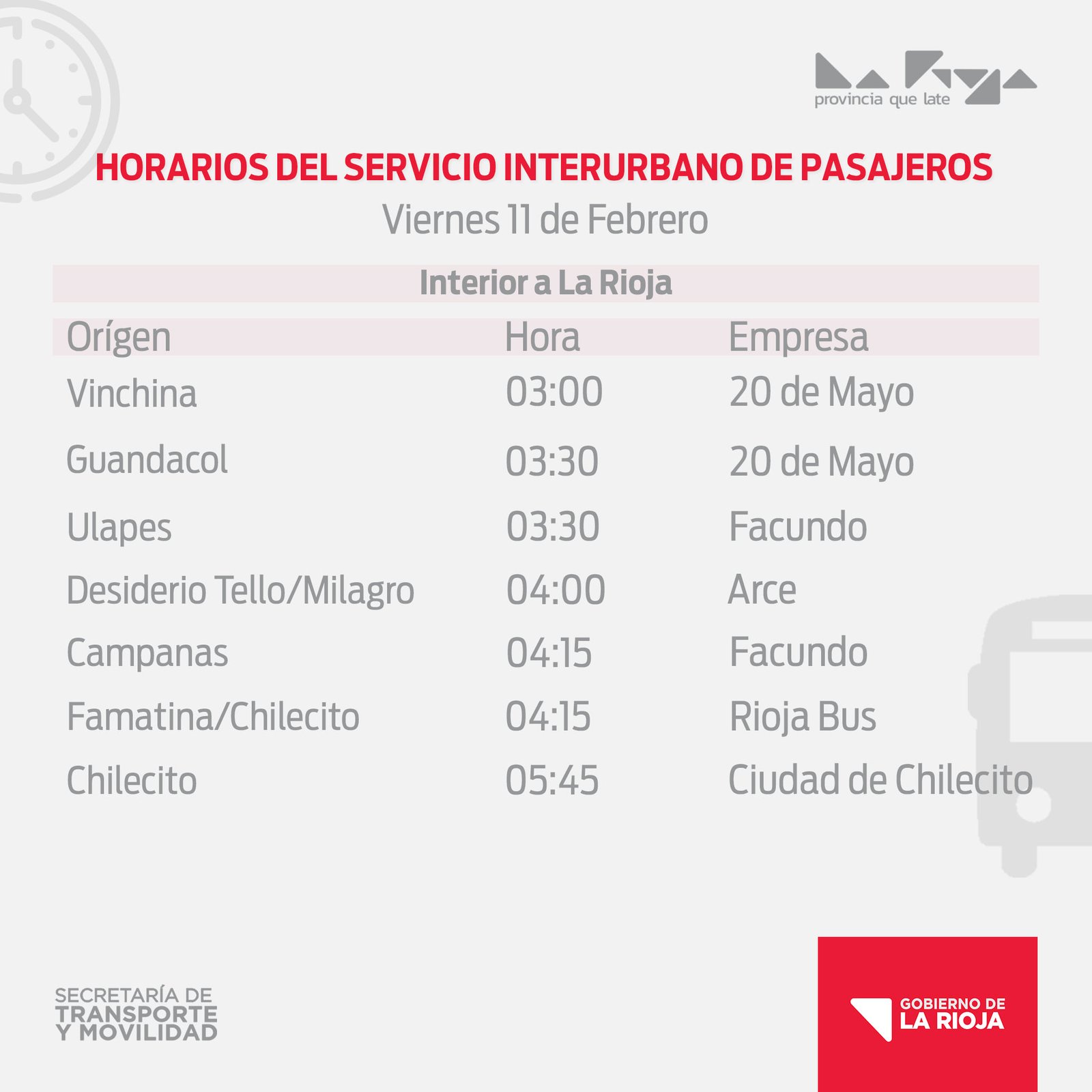 La Secretaria de Transporte y Movilidad informaron los nuevos horarios del servicio interurbano de pasajeros a partir de hoy lunes 7 de febrero al domingo 13 de febrero.