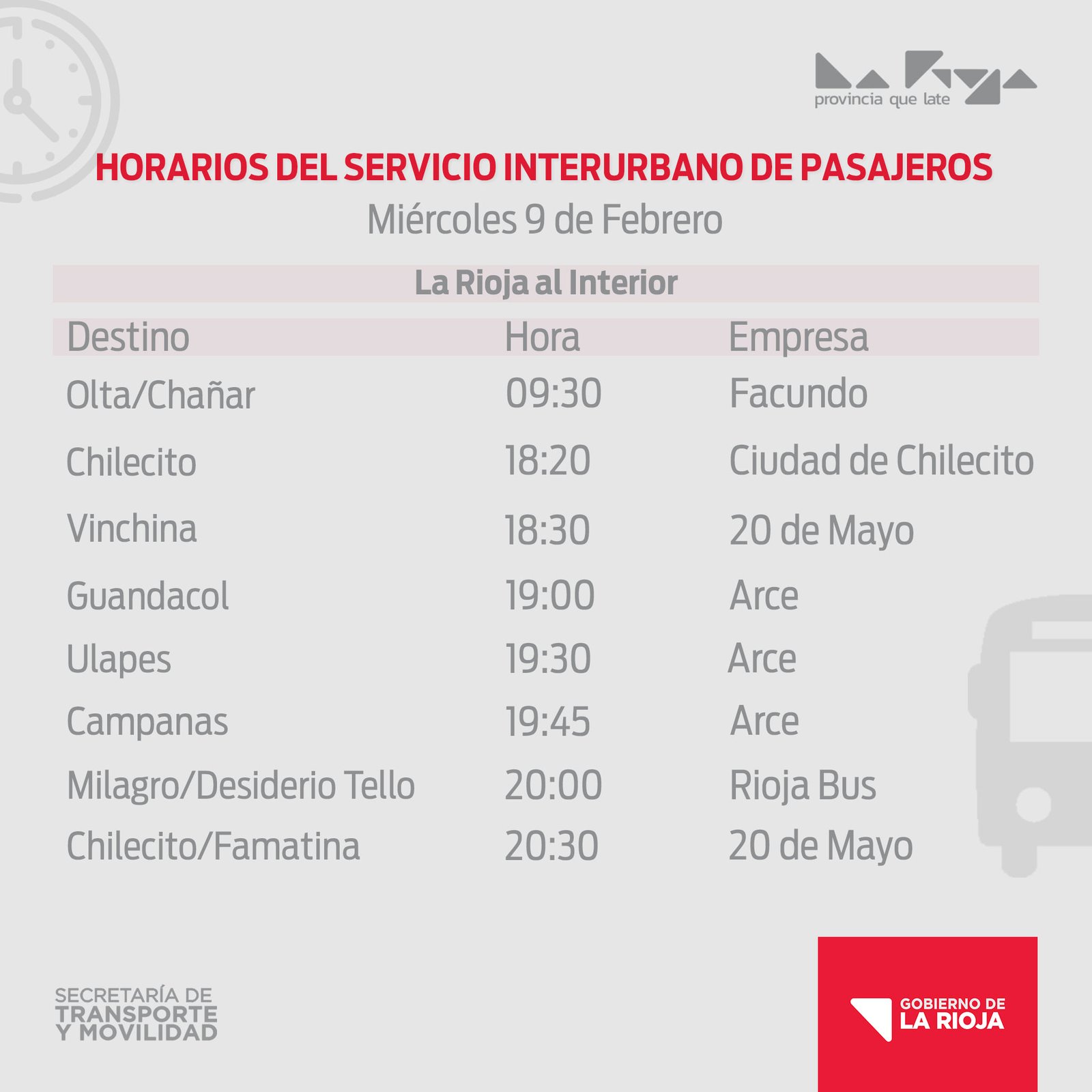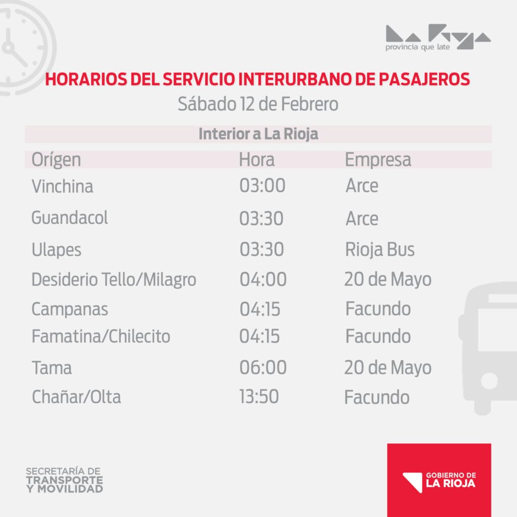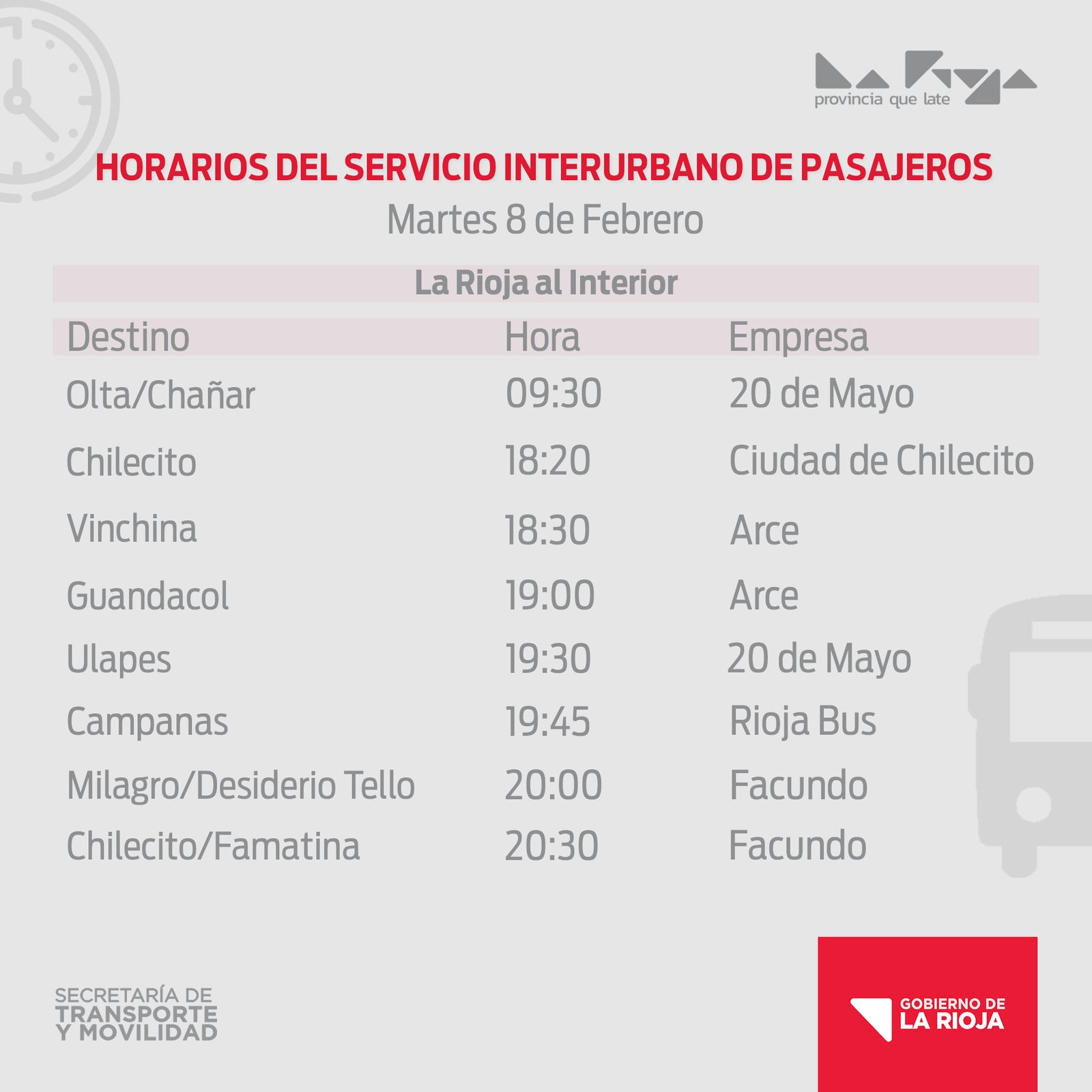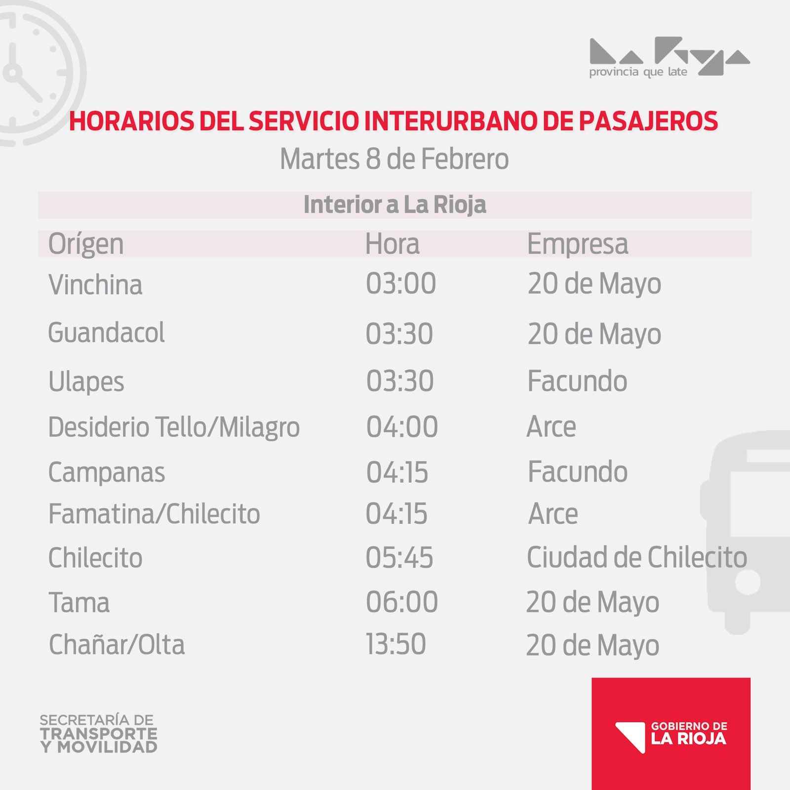 La Secretaria de Transporte y Movilidad informaron los nuevos horarios del servicio interurbano de pasajeros a partir de hoy lunes 7 de febrero al domingo 13 de febrero.
